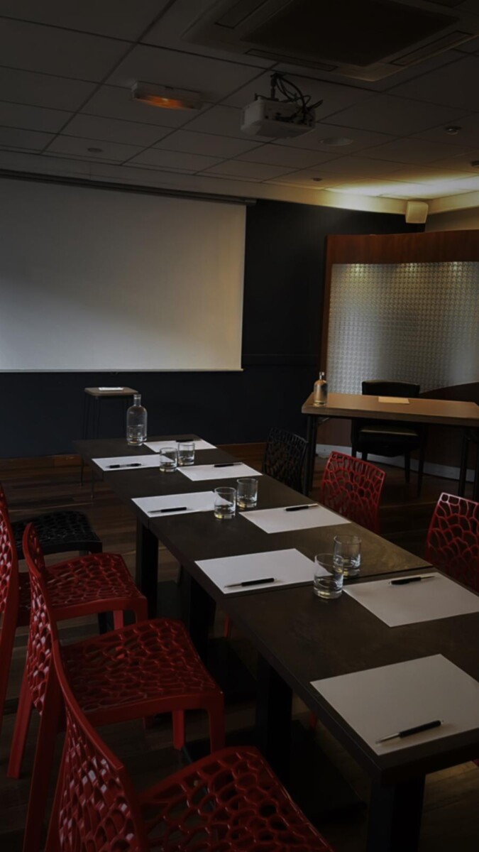 Descubra una sala de 50 m² totalmente adaptable a sus necesidades: en configuración en U, tipo teatro, aula, o incluso sin mesas para talleres, showrooms, etc. El espacio está equipado con un proyector, dos rotafolios y acceso Wi-Fi para garantizar el éxito de sus reuniones o presentaciones.