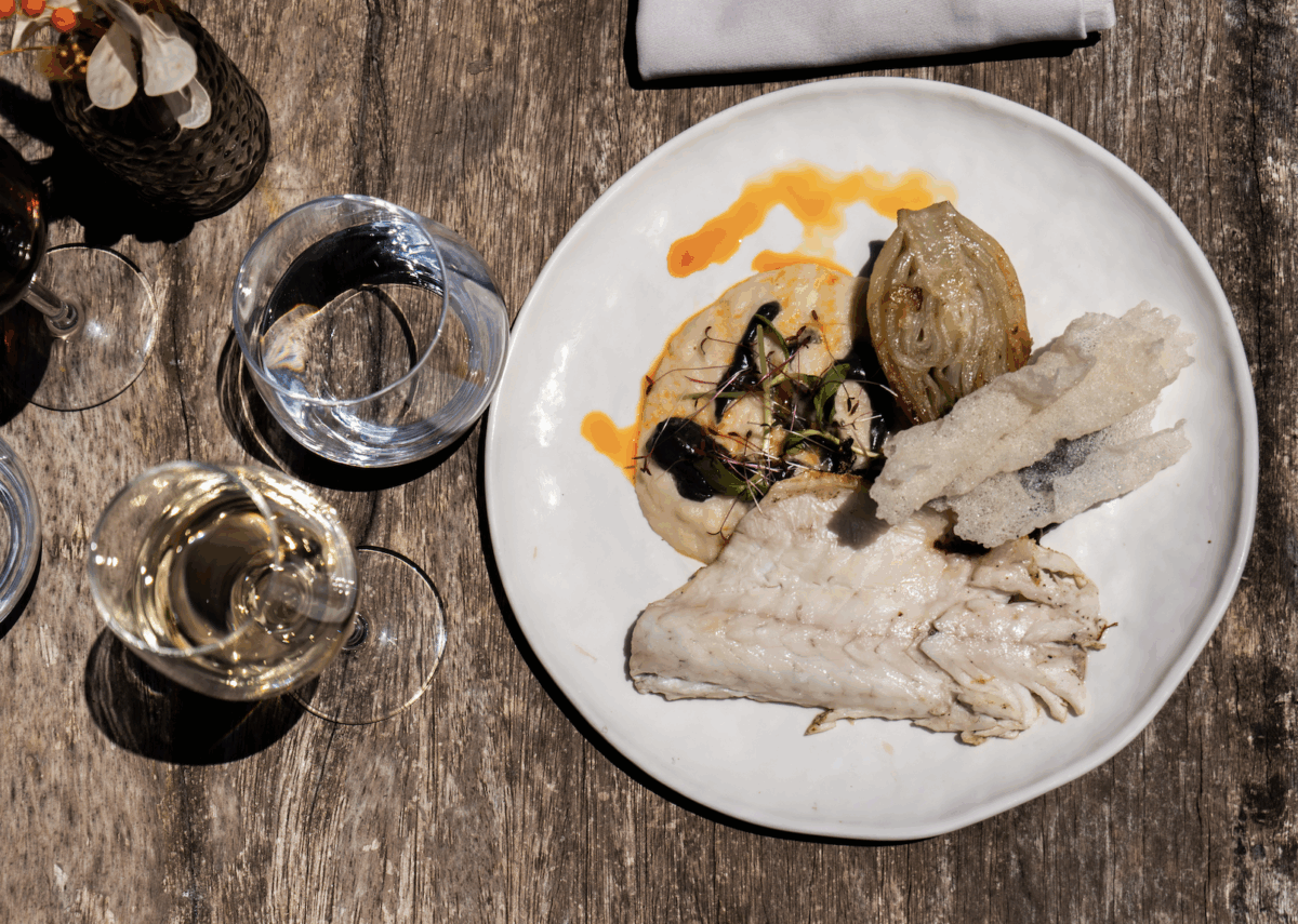 Dos de cabillaud rôti, sauces chorizo, purée de courge, duo de chou fleur 21 €