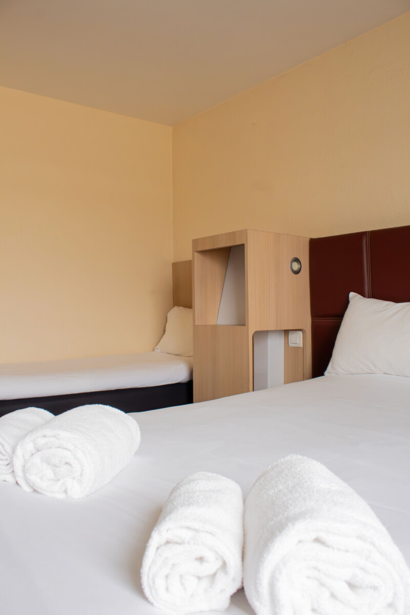 Venez en famille découvrir nos chambres triples tout confort équipées d’un lit double en 140 x 190 et d’un lit simple en 80 x 190 d’un écran TV, ainsi qu’un espace de travail. Profitez d’une salle de bain à l’image du Pays Basque avec douche et WC. Le double vitrage vous garantira une tranquillité durant votre séjour.